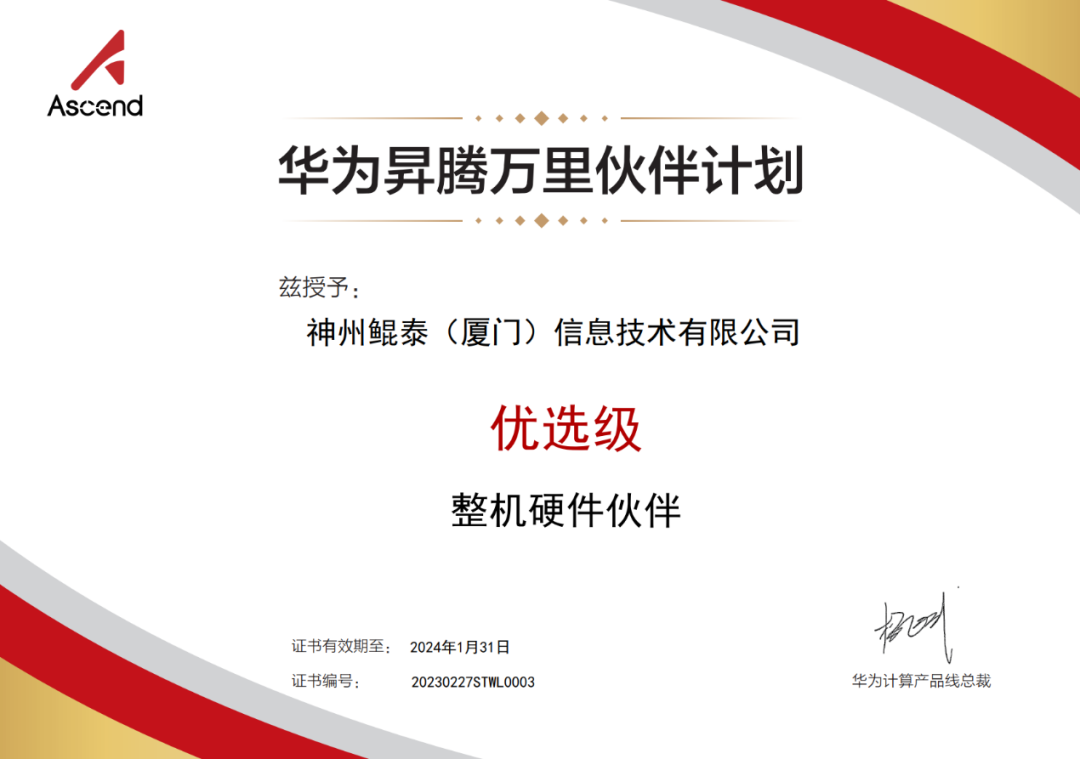 近日,米兰Milan数码旗下神州继获得华为鲲鹏领先级整机硬件伙伴认证之后,再获华为昇腾优选级整机硬件伙伴认证!这是神州与华为昇腾深化合作的硕果,也代表着米兰Milan数码信创业务在AI领域获得生态伙伴的充分认可。